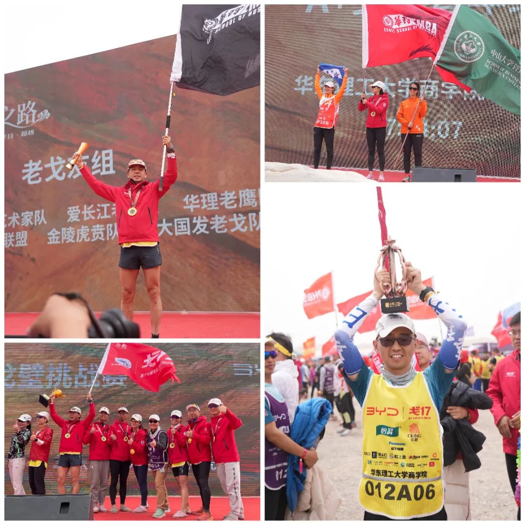 在商学院院长马铁驹和华东理工大学锡比乌中欧国际商学院副院长赵炎的带领之下,“戈17团队”新老戈友一行60人并肩奔跑,以顽强的拼搏精神投入到本次赛事之中。他们凭借超凡的个人毅力和紧密的团队协作,成功克服一系列自然环境挑战、完成自我突破蝶变,并一举斩获沙克尔顿全员完赛奖、竞赛A队卓越奖、竞赛老A队季军等多项赛事荣誉。陈蓓选手更是代表华理挑战最高极限,荣获A+女子组冠军。