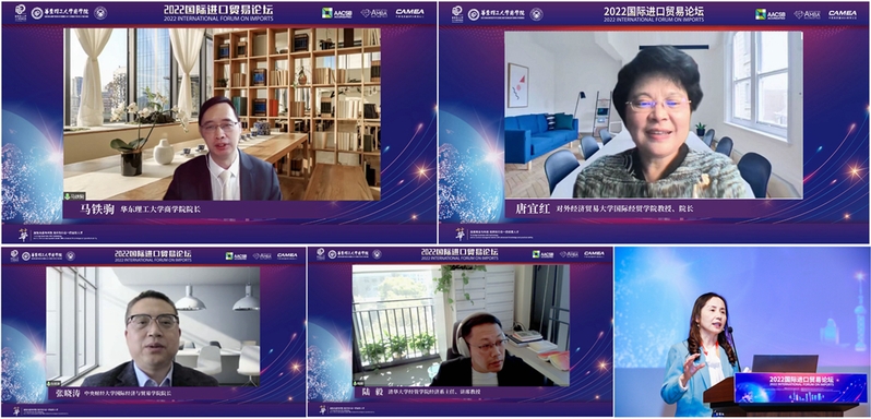 在第五届中国国际进口博览会盛大开幕之际,2022(第五届)国际进口贸易论坛于11月4日在华东理工大学举办。正值华理建校70周年之际,来自国际组织、中国政府、学界和业界的专家学者相聚“云端”,以线上线下相结合的形式,共同围绕“新发展格局下贸易与制度型开放”这一主题进行研讨交流,线上直播观看量10万余人次。华东理工大学党委书记杜慧芳出席会议并致辞,论坛由副校长阎海峰主持。