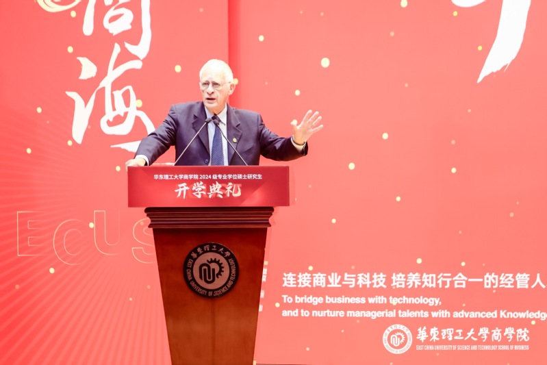 本次典礼以“启航商海,乘梦翱翔”为主题,2016年诺贝尔经济学奖获得者、哈佛大学教授、华东理工大学名誉教授、商学院战略咨询委员会主任委员奥利弗·哈特,研究生院副院长郁惠蕾,商学院院长范体军,管理科学与工程系教授李嘉,奥利弗哈特合同与治理研究中心副主任蒋士成,校友代表徐以刚,商学院专业学位教育中心各部门负责人、辅导员、班导师以及2024级全体商学院专业学位硕士研究生新生共同参加典礼。商学院党委副书记蒋志强主持典礼。