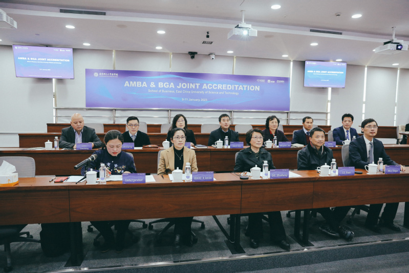 今年1月9日至11日,由AMBA和BGA国际认证咨询委员会主席Steefvan de Velde教授、香港浸会大学商学院院长Edward Snape教授、浙江大学全球创业研究中心主任王重鸣教授、AMBA和BGA认证总监George Iliev先生组成的AMBA和BGA国际认证专家组对华东理工大学商学院开展了为期三天的线上认证评估。校党委书记杜慧芳,副校长李剑,党委办公室主任侯宇,研究生院院长杜文莉,教务处处长黄婕,国际教育学院院长李霄鹏,商学院党委书记侯丽敏、院长马铁驹,以及商学院党政班子成员和相关部门负责人出席了认证会谈。